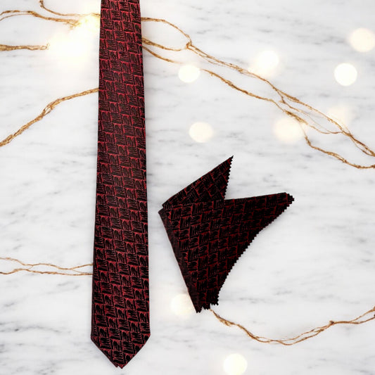 3D Textured Red and Black Patterned - Istanbul Fashion Tie - Classic Wide