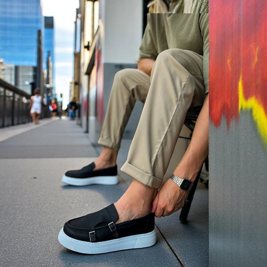 Black Stylish - Height Increase - Men Casual Shoes with Modern Buckle Details on the Side - B-417