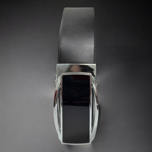 Black Solid Leather with Shiny Black and Silver Buckle - 1
