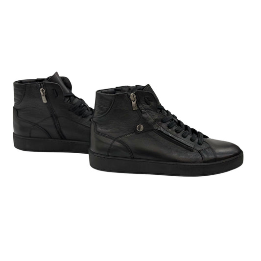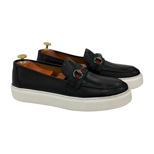 Black Sneakers-Rubber White Bottom-Detailed Chrome Metal Finish Front-134-6354