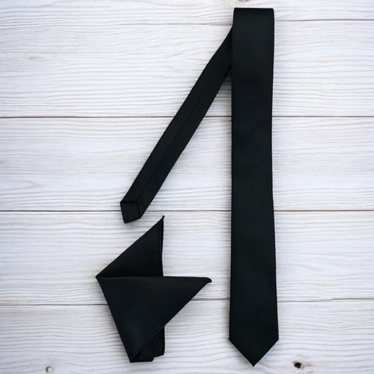 Blackest Black Satin Tie with Adjustable Strap - Reversible
