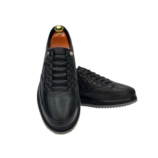 Black with Gray Foam Bottom- Sneakers_Shiny Finish-Black Lace-Luxury Interior and Exterior Leather- 305 451