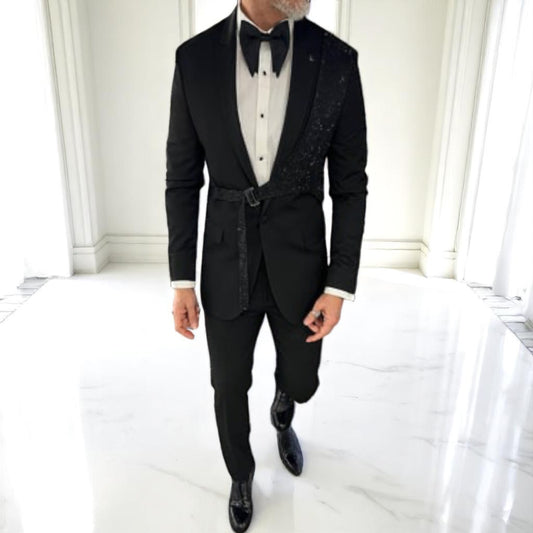 Black with Black Gems Unique 2025 Tuxedo- Slim Fit