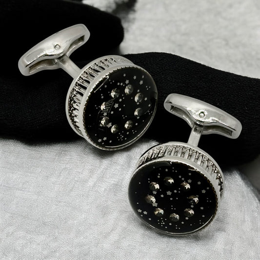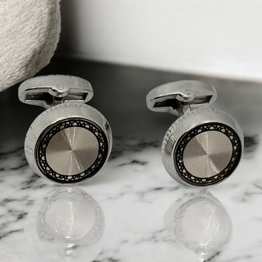 Bold Round Round Istanbul Fashion Cufflinks Detailed with Silver, Diamonds and Black Interior- 25
