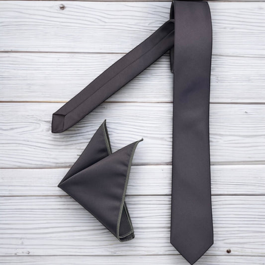 Charcoal Gray - Istanbul Fashion Slim Tie, Plain Satin