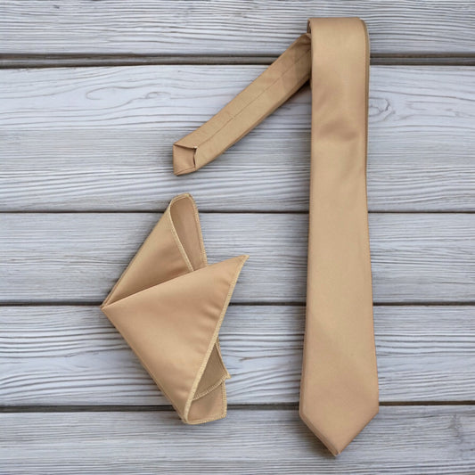 Champagne - Istanbul Fashion Slim Tie, Plain Satin