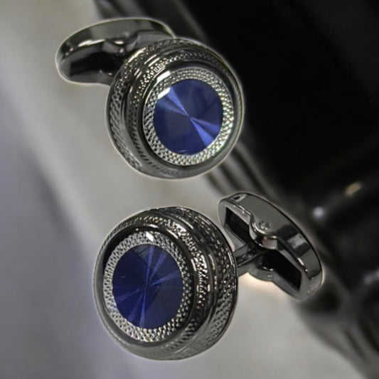 Chrome with Silver and Blue Interior - Istanbul Fashion Cufflinks - 44