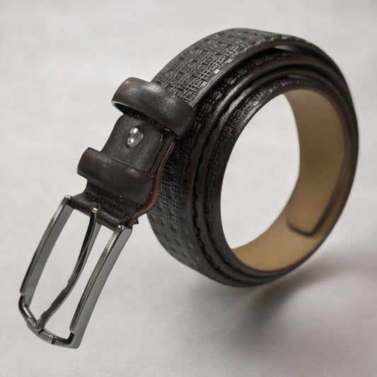 Classic Chocolate Brown Leather Belt with Silver Buckle - 12