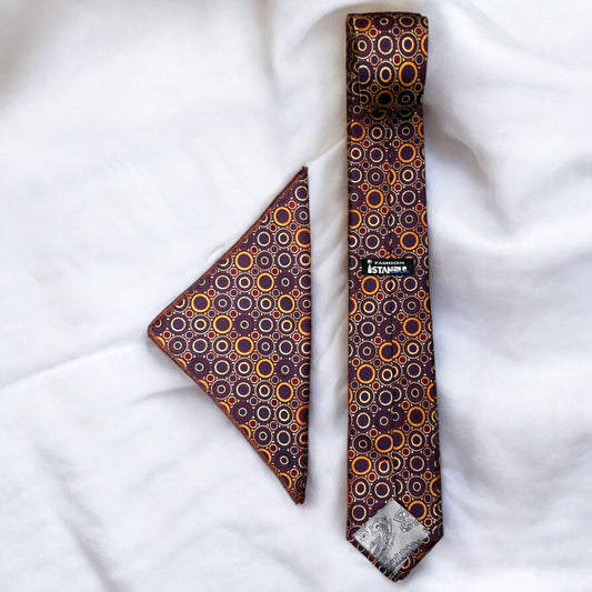 Circled Patterns Burgundy and Navy -Istanbul Fashion Tie - Classic Wide