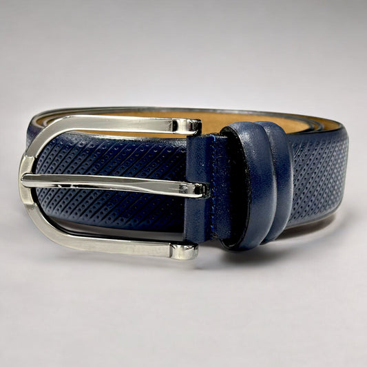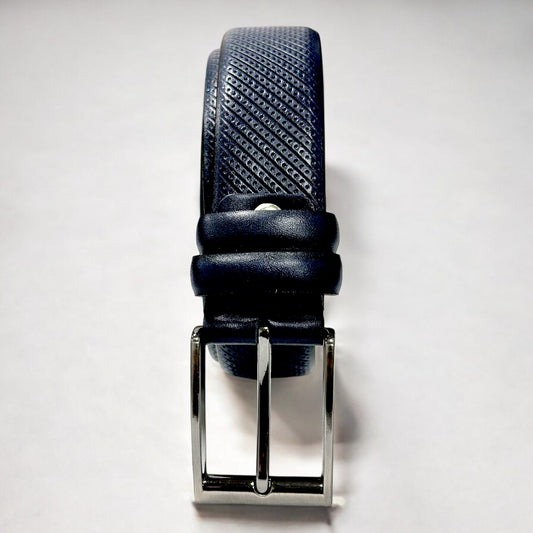 Classic Navy Leather Belt with Round Corners Silver Buckle - 9