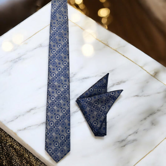 Circled Detailing with Blue and Champagne - Istanbul Fashion Tie - Classic Wide