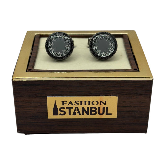 Chrome Round Istanbul Fashion Cufflinks - Gray Interior with Beautiful Details -1