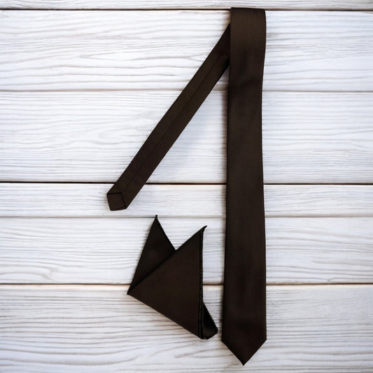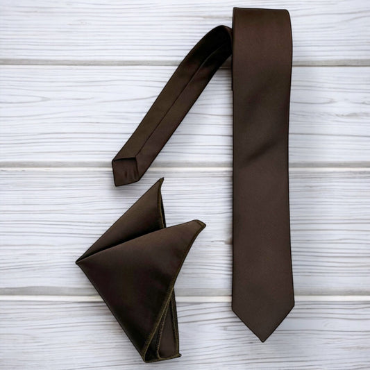 Chocolate Brown- Istanbul Fashion Slim Tie, Plain Satin