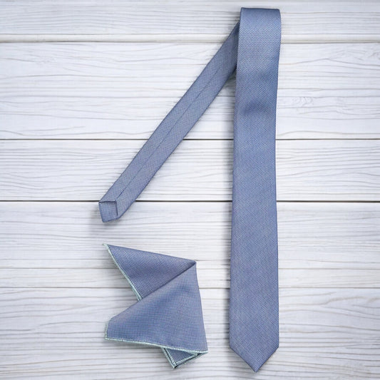 Classic Light Blue with Light and Dark Details - Istanbul Fashion Slim Tie, Textured Fabric