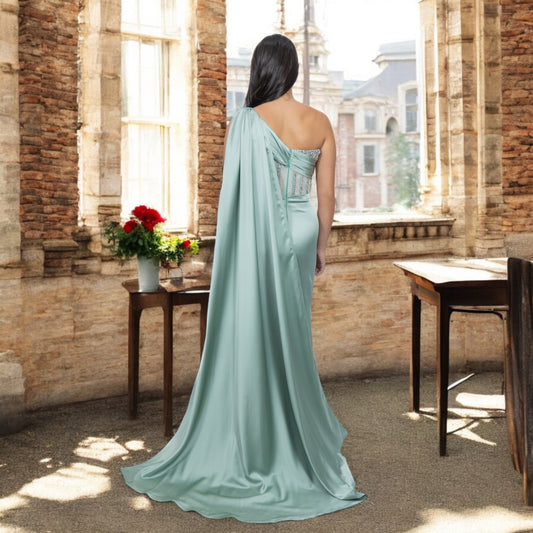 Classy Satin Sage Green - One side Corset Top Dress