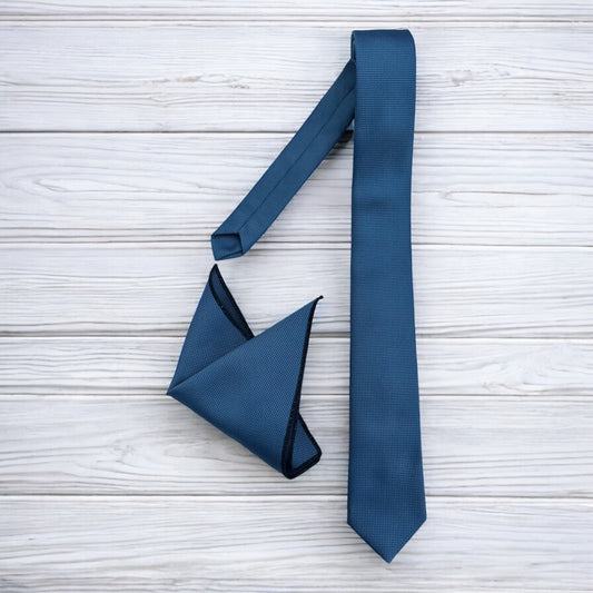 Classy Blue with Lines- Istanbul Fashion Slim Tie, Textured Fabric