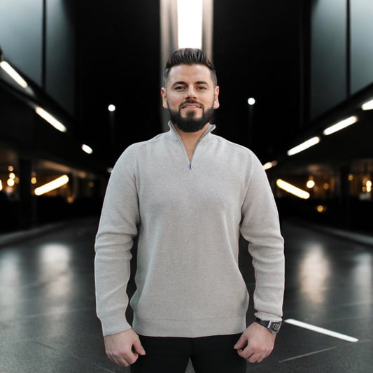 Off White Wool- Quarter Zipper, Essential Sweater