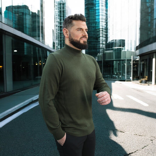 Olive Green Wool Mock Neck, Essential Sweater