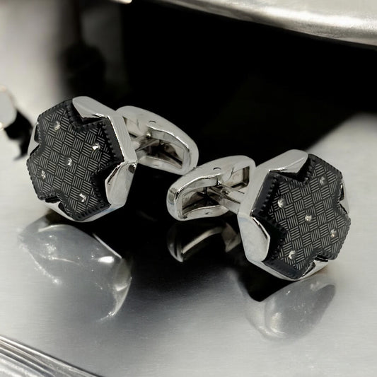 Octagon Crossed Istanbul Fashion Cufflinks - Silver with Black Details -9