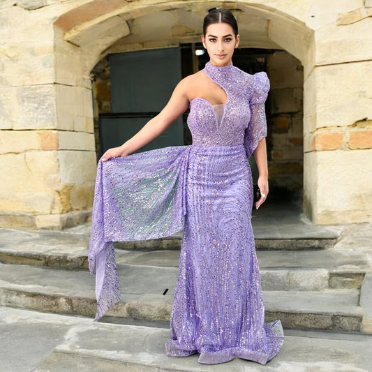 Purple Elegant Long Dress-Detailed with Beautiful Crystals and Sequins Uniquely One ShoulderRegular price $499.99 USDRegular priceUnit price / per$1,000.00 USDSale price $499.99 USDSale