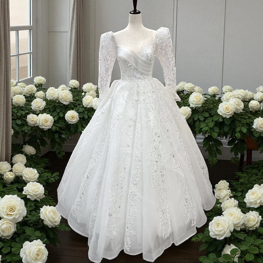 Princess Ball Gown Style - Wedding Gown - Creamy White -Long Sleeves Detailed with SequinsRegular price $1,499.00 USDRegular priceUnit price / per$2,999.99 USDSale price $1,499.00 USDSale