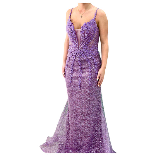 Purple Elegant Long Dress-Detailed with Beautiful Crystals and Sequins and Detachable Long SkirtRegular price $600.00 USDRegular priceUnit price / per$1,200.00 USDSale price $600.00 USDSale