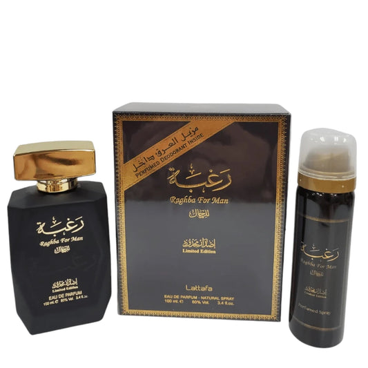 Raghba for Men 2 Piece Set (3.4 Ounce Eau de Parfum Spray + 1.7 Ounce Deodorant Spray)