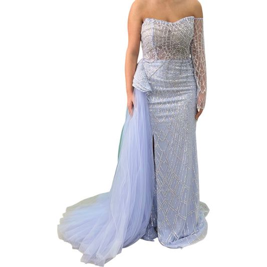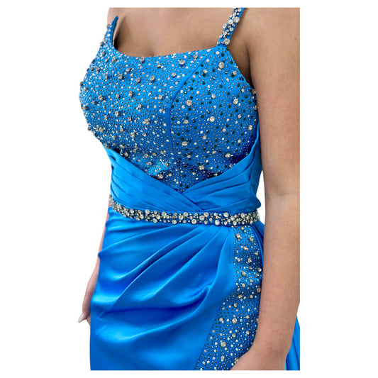 Sexy Blue Long Dress- Detailed with Beautiful Crystals and Sequins