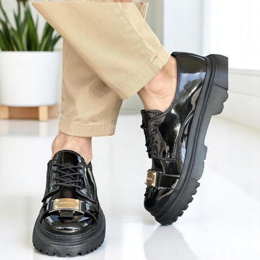 Shiny Metal Detailed Black - Height Increase - Men Casual Shoes - R-2402