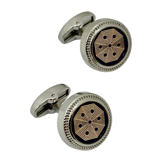 Shiny Round Round Istanbul Fashion Cufflinks with Silver, Blue, and Light Gold - 29