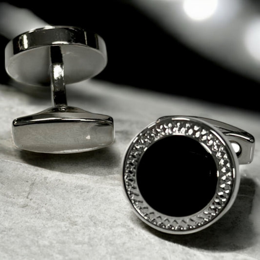 Silver Black Round Istanbul Fashion Cufflinks Detailed with, Shiny Silver 34