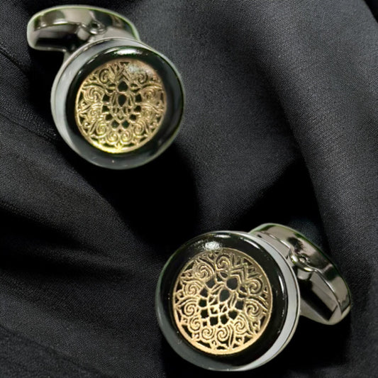 Simple Mixed Details of Black and Gold on Matte Finish- Istanbul Fashion Cufflinks - 40