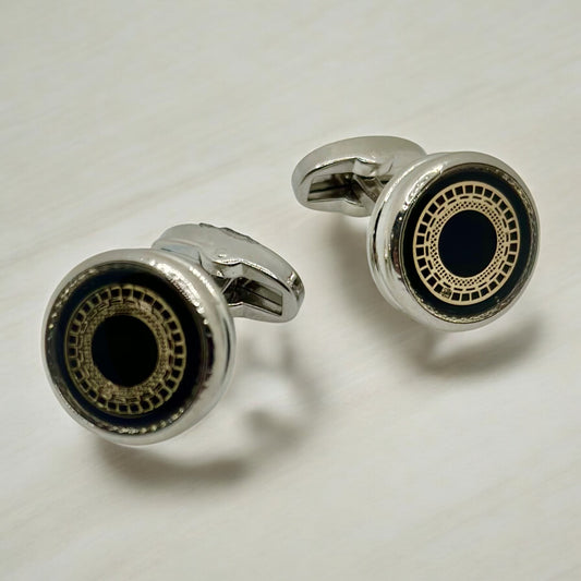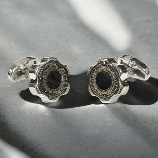 Silver with Black Detailing Shaped Edges - Istanbul Fashion Cufflinks - 46