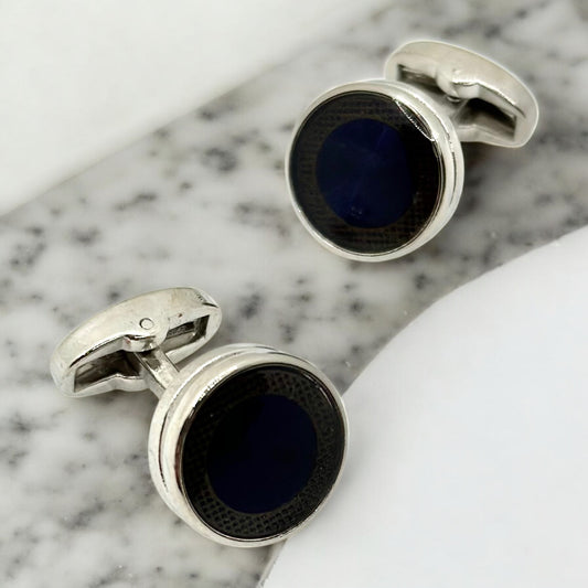 Silver and Blue Shiny Round Round Istanbul Fashion Cufflinks - 28