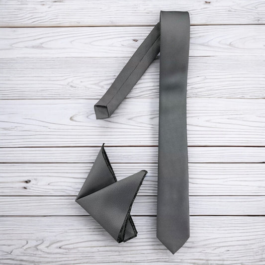 Silver Gray with Dark Lines - Istanbul Fashion Slim Tie, Textured Fabric