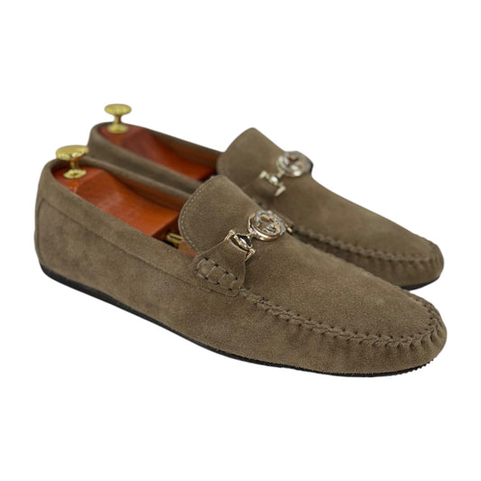 Velvet Beige Slip On -Rubber Bottom--Silver Finish Metal Details-134 5671
