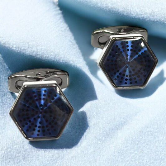 Uniquely Shaped Chrome and Navy Blue Interior - Istanbul Fashion Cufflinks - 51