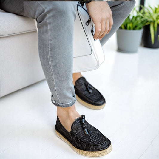 Detailed Black shoes with Beige Bottom - Modern Casual Shoes - 1190