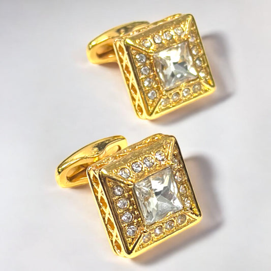 Luxury Gold Squared Detailed with Diamonds - Istanbul Fashion Cufflinks - 71