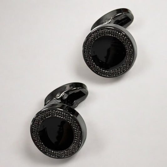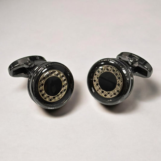 Round Black Exterior and Interior with a Touch of Gold Shimmer - Istanbul Fashion Cufflinks - 62