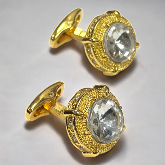 Luxurious Round Diamond Surrounded by Detailing Gold Finish - Istanbul Fashion Cufflinks - 69