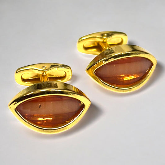 Elegant Tear Shaped Gold with Orange Jewel - Istanbul Fashion Cufflinks - 76