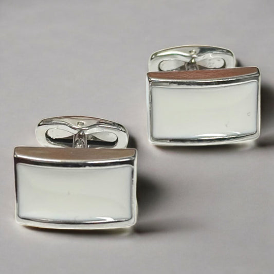 Rectangular Silver with White Interior - Istanbul Fashion Cufflinks - 68
