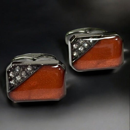 Rectangular Chrome with Rustic Orange Jewell - Istanbul Fashion Cufflinks - 77