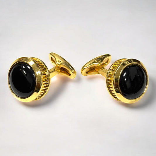 Elegant Round Gold with Black Interior - Istanbul Fashion Cufflinks - 75
