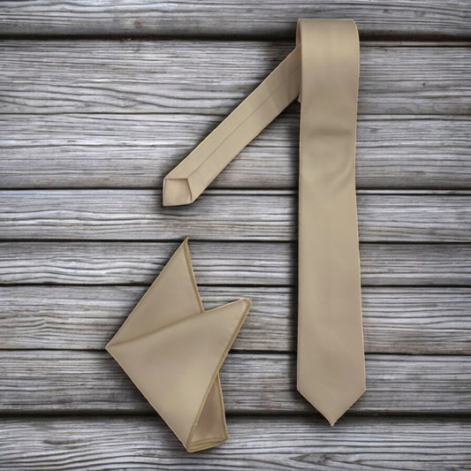 Champagne - Istanbul Fashion Slim Tie, Plain Satin
