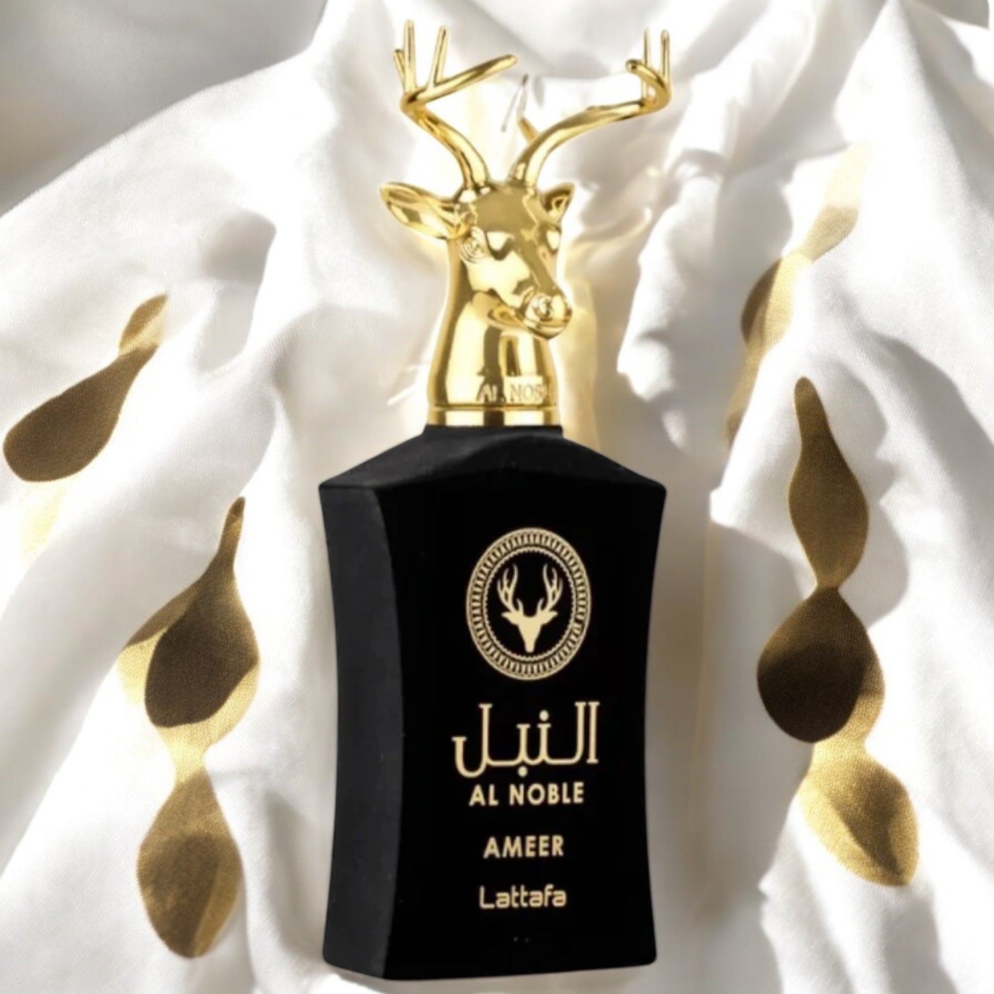 This perfume has a rich and complex scent profile, with a combination of floral, amber, musky, vanilla, powdery, and warm spicy notes. Woody-spicy unisex perfume. Apples, pink pepper and rosemary open the perfume in the top note. The heart note is deep, warm and full with cloves and floral notes. Oudh, vetiver, Cyperus esculentus, labdanum and patchouli conclude the perfume in a woody and aromatic base. Ameer Al Noble is a complex, expressive fragrance ideal for leisure and evening wear. Main accords: woody, Oudh, aromatic, warm spicy, earthy, floral