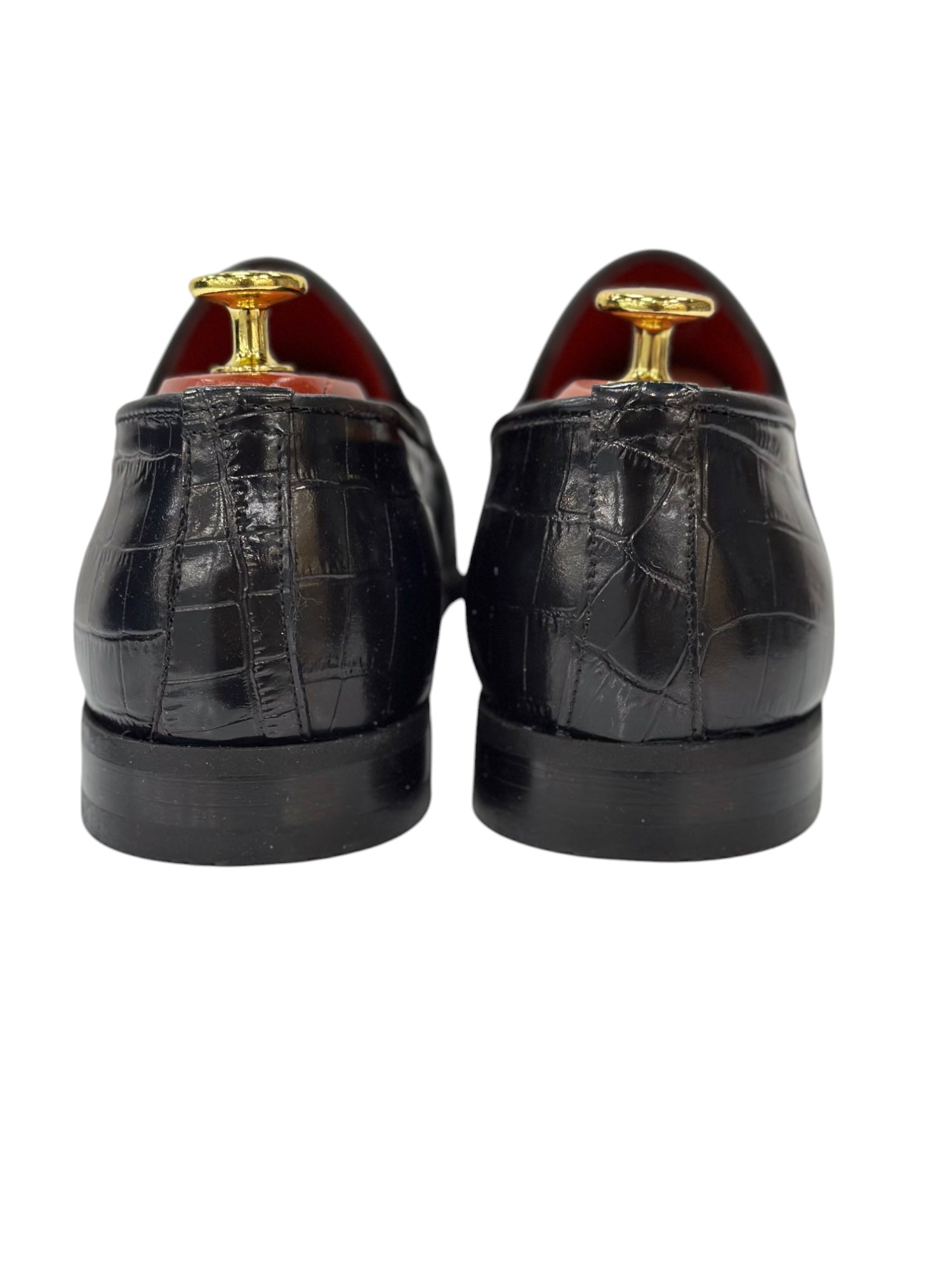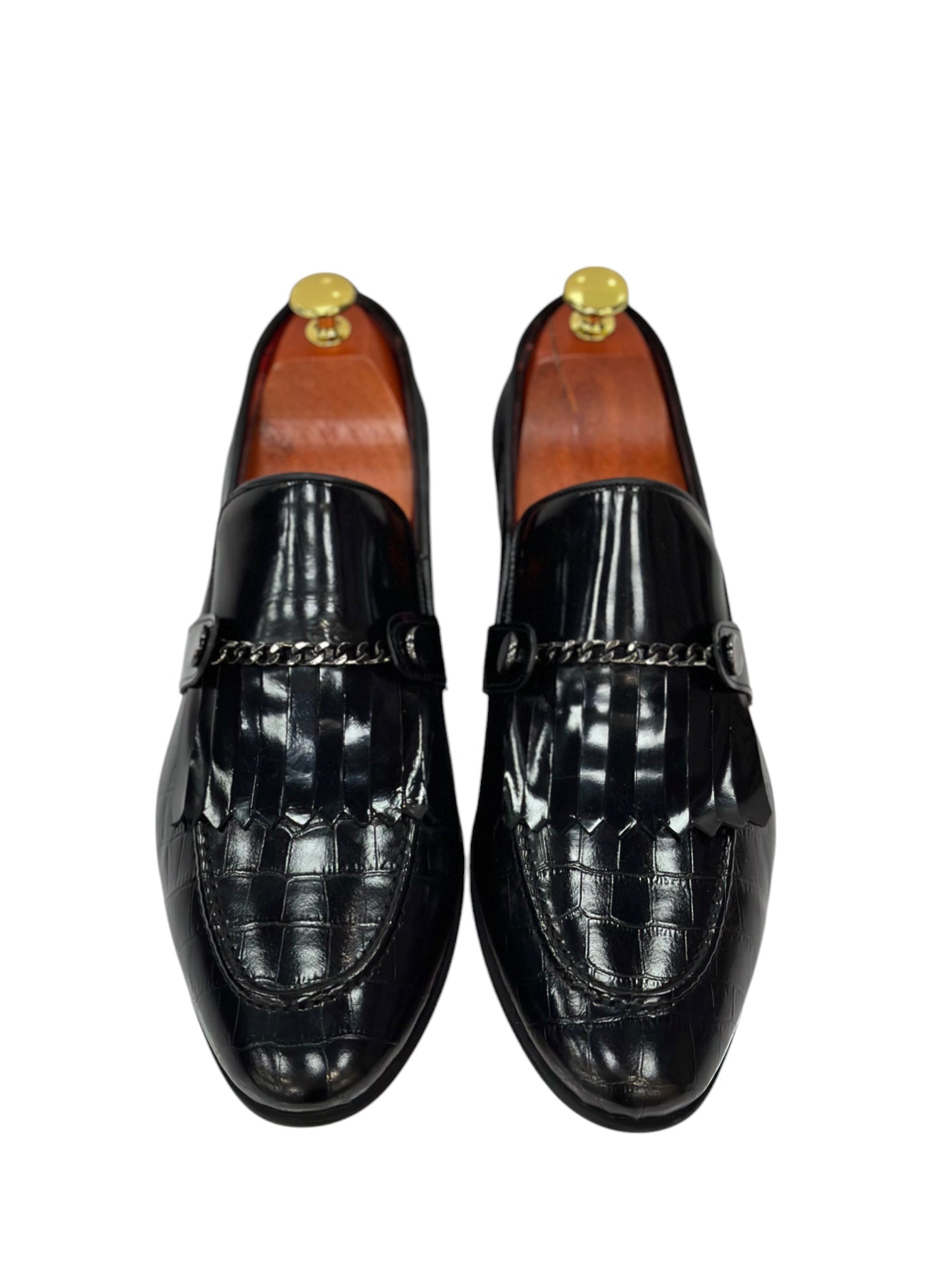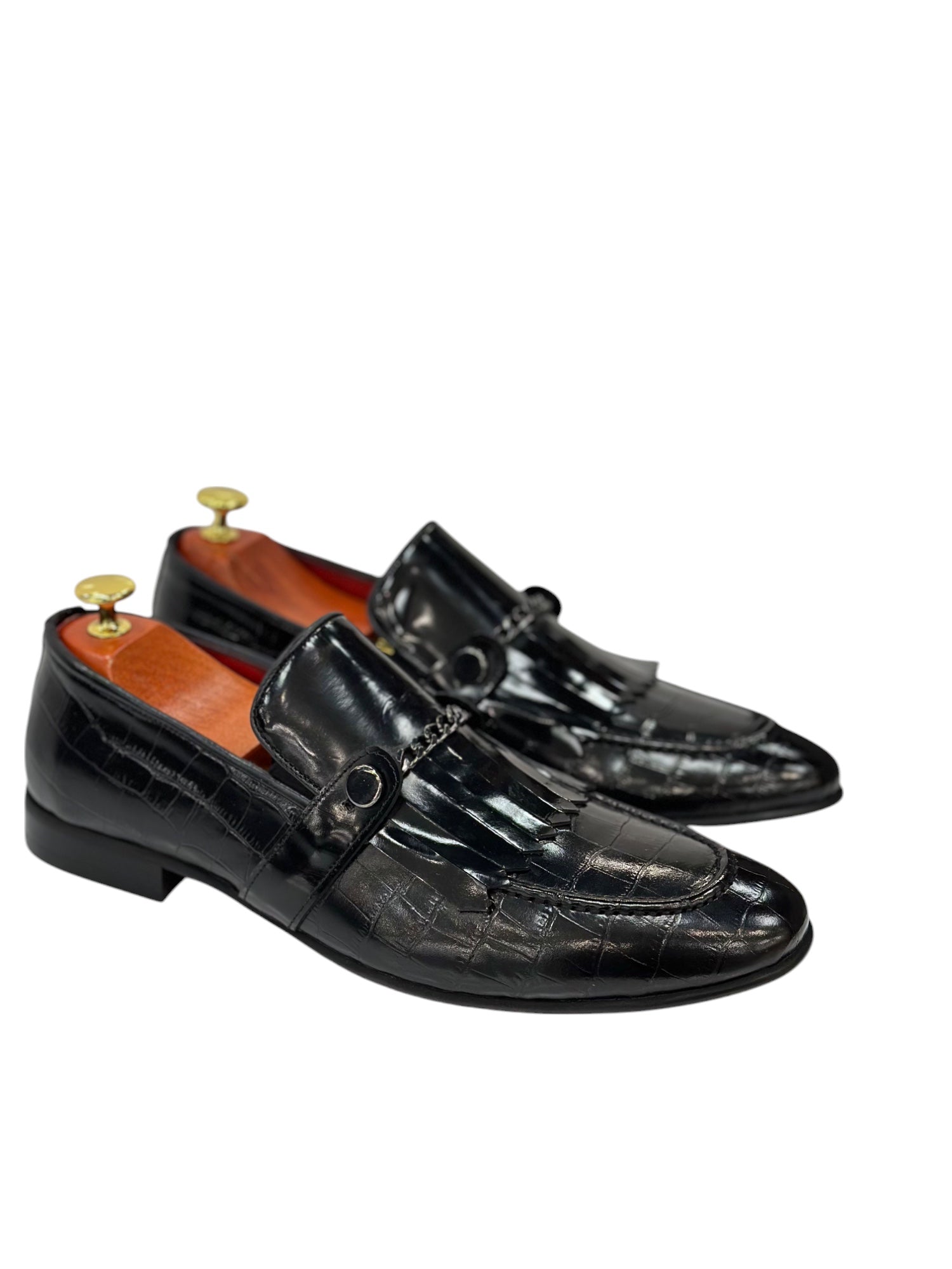 Black Istanbul Fashion by Raad Red Bottom Shoes With Shine Finish and Chrome Chain-3015