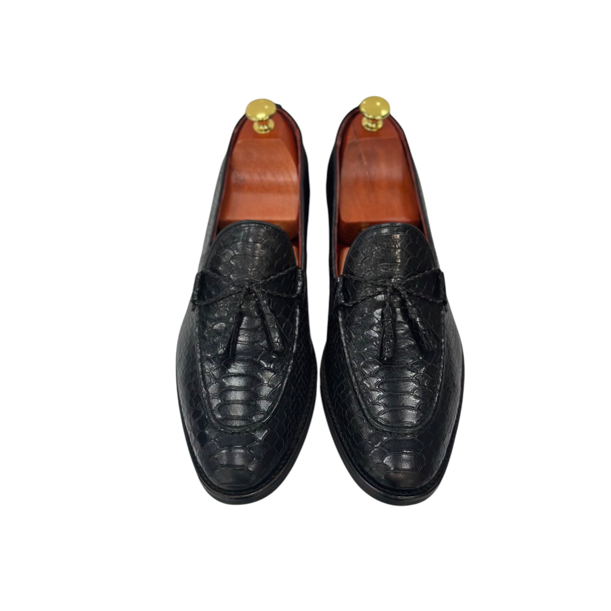 Black Istanbul Fashion by Raad Red Bottom Shoes With Unique Texture leather and Rope -1527