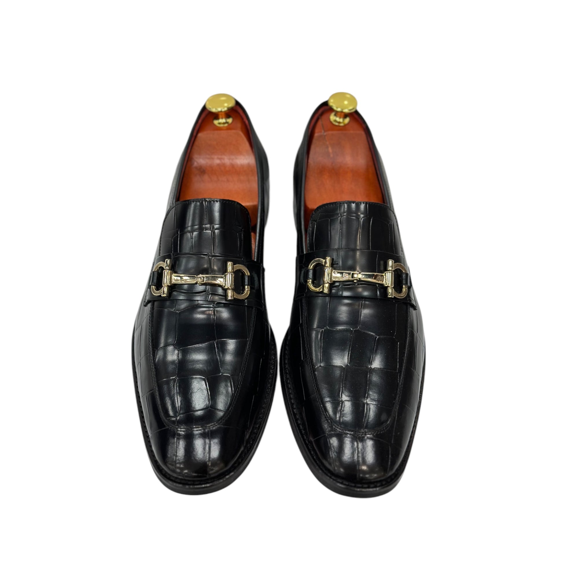 Black Istanbul Fashion by Raad Red Bottom Shoes With Unique Textured Leather with Gold Finish Buckle-1700